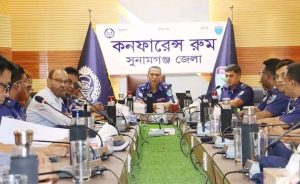 সুনামগঞ্জ জেলা পুলিশের আয়োজনে ৮ই মে রোজ বৃহস্পতিবার সকাল ১০ ঘটিকার সময় হলরুমে জেলা পুলিশ সুপার তোফায়েল আহমেদ এর সভাপতিত্বে ও অতিরিক্ত পুলিশ সুপার (প্রশাসন ও অর্থ) তাপস রঞ্জন ঘোষ এর সঞ্চালনায় মাসিক কল্যাণ সভা ও অপরাধ পর্যালোচনা সভা অনুষ্ঠিত হয়েছে। প্রথমে পূর্ববর্তী সভার সিদ্ধান্তসমূহের অগ্রগতি পর্যালোচনা করা হয়। এরপর উপস্থিত পুলিশ সদস্যরা তাদের সমস্যা ও সুপারিশ তুলে ধরেন। পুলিশ সুপার মনোযোগ দিয়ে তা শোনেন এবং তাৎক্ষণিক সমাধানে নির্দেশনা প্রদান করেন। কল্যাণ সভায় উপস্থিত ছিলেন অতিরিক্ত পুলিশ সুপার (দিরাই সার্কেল) মো. শরিফুল হক, সহকারী পুলিশ সুপার (ছাতক সার্কেল) মো. আব্দুল কাদের, সহকারী পুলিশ সুপার (ধর্মপাশা সার্কেল) আলী ফরিদ আহমেদ, শিক্ষানবিশ এএসপি পিয়াস সরকারসহ সকল থানার অফিসার ইনচার্জ এবং বিভিন্ন পদমর্যাদার অন্যান্য সদস্যবৃন্দ।